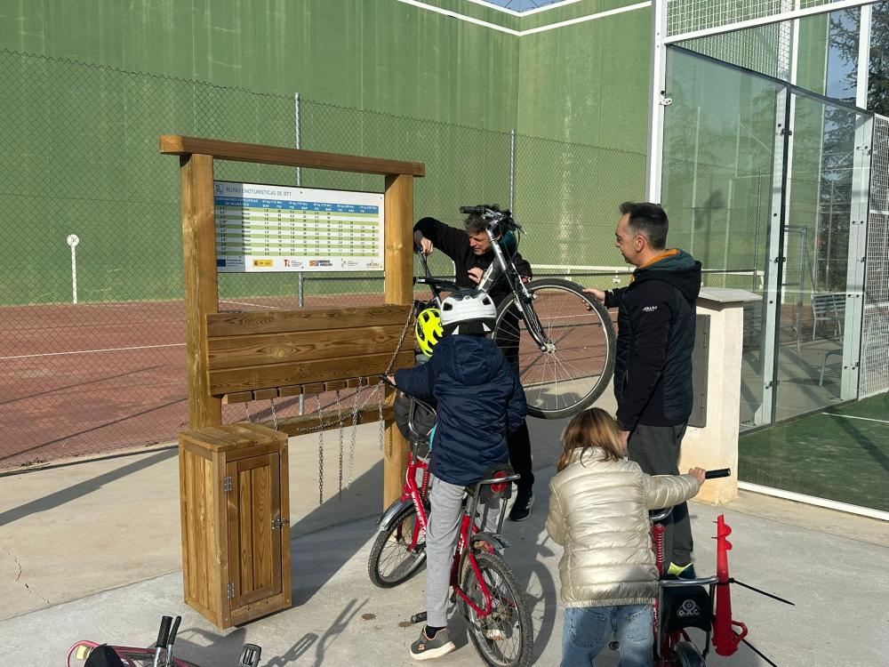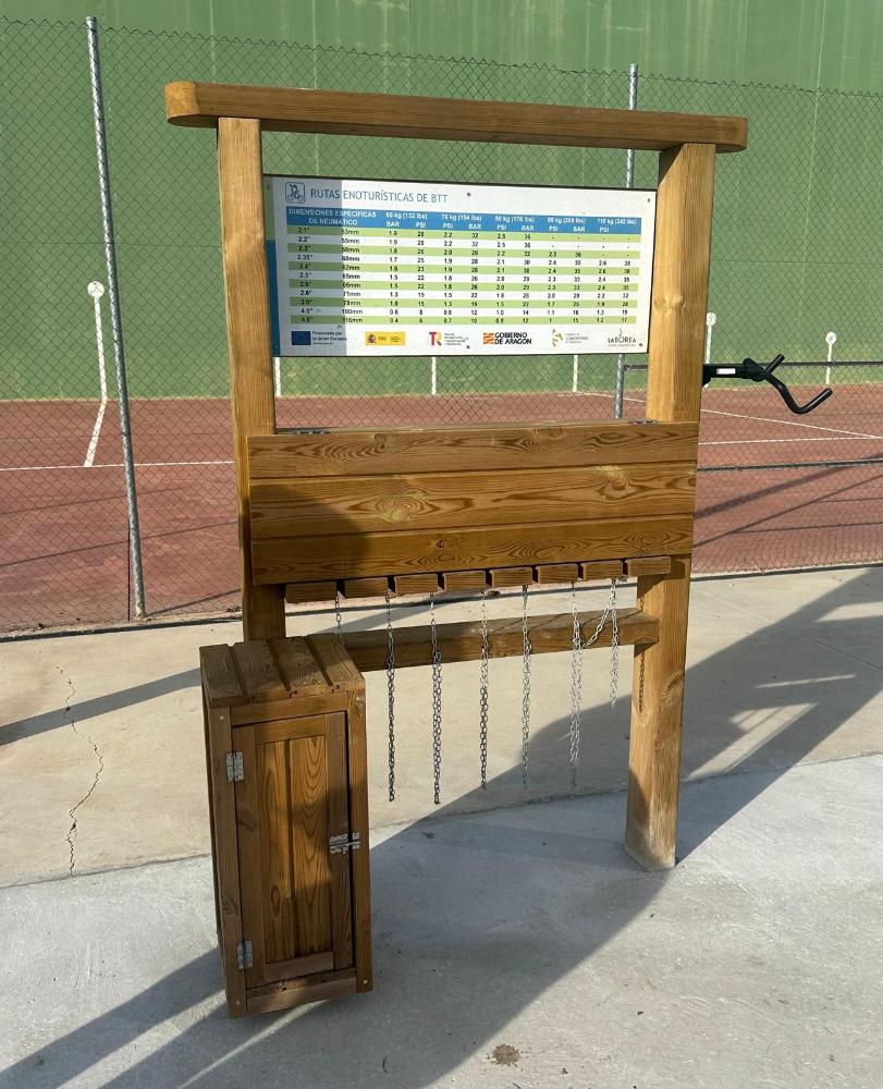 La Comarca de Somontano de Barbastro y el Ayuntamiento de Estadilla instalan una estación para reparar bicicletas de forma gratuita.