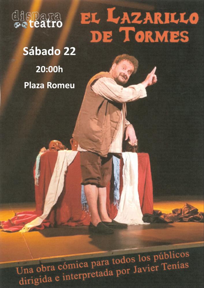 El sábado 22, a las 20:00h en la Plaza Romeu la Sociedad L’Aurora organiza el teatro cómico “El Lazarillo de Tormes”. Una obra cómica para todos los públicos dirigida e interpretada por Javier Tenías. Una adaptación del clásico de la picaresca más actual que nunca.