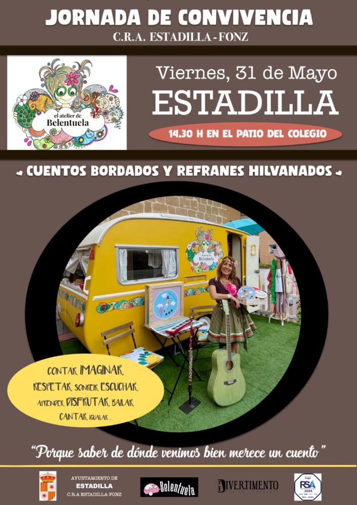 Con motivo de la celebración de la jornada de convivencia del C.R.A. La Candeleta, que este año se llevará a cabo en Estadilla, el viernes 31 de mayo a las 14:30h nos visitará Belentuela y su mágica caravana con el espectáculo “Cuentos bordados y refranes hilvanados”. Actividad subvencionada por el Ayuntamiento de Estadilla.