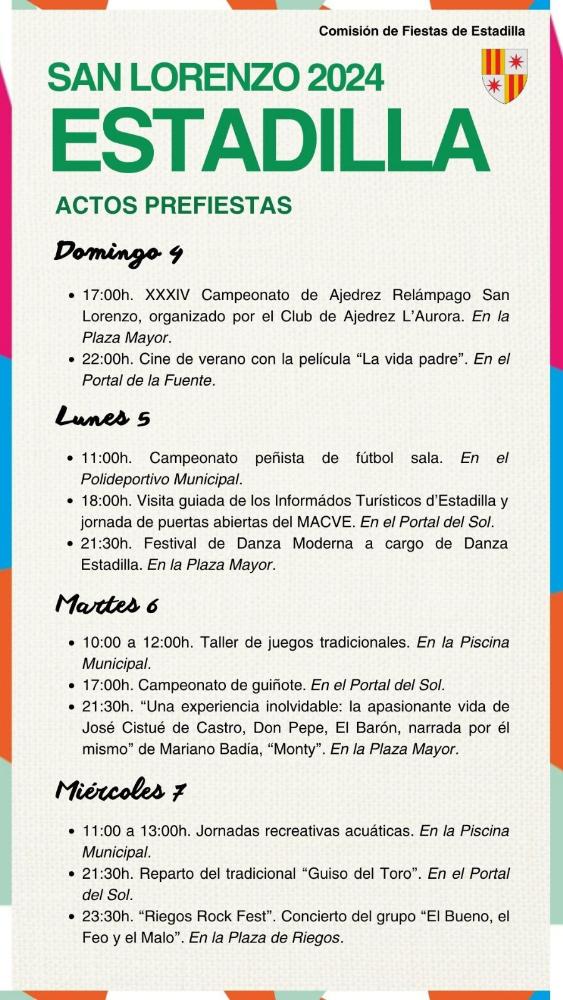 El Ayuntamiento de Estadilla recuerda que hoy lunes, 5 de agosto, se van a realizar los siguientes actos: