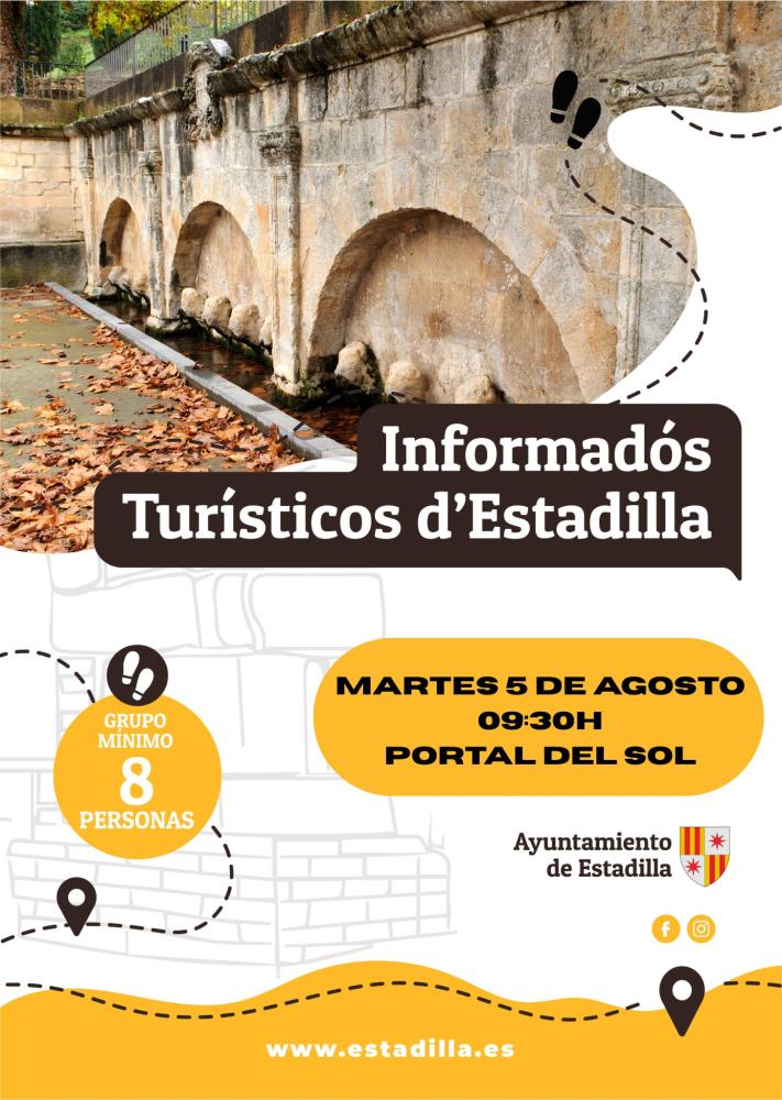 El martes, 5 de agosto, el grupo de Informadós Turísticos d’Estadilla organizan una nueva visita en nuestro municipio. La salida será a las 09:30h desde el Portal del Sol.