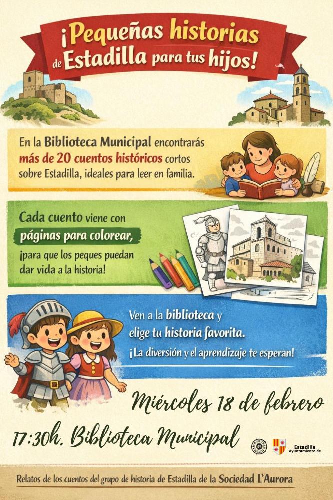 Los más pequeños podrán conocer historias de Estadilla a través de cuentos cortos y dibujos. Una actividad pensada especialmente para acercar la historia del municipio de manera visual y entretenida.