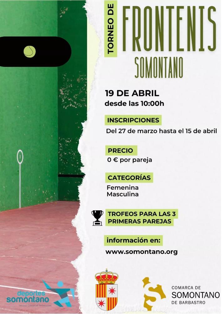 El municipio de Estadilla será escenario el próximo 19 de abril, en horario de mañana, del I Torneo de Frontenis Comarcal, una cita deportiva que nace con el objetivo de seguir impulsando la afición por esta modalidad y dar continuidad a la veterana Liga de Frontenis del Somontano.